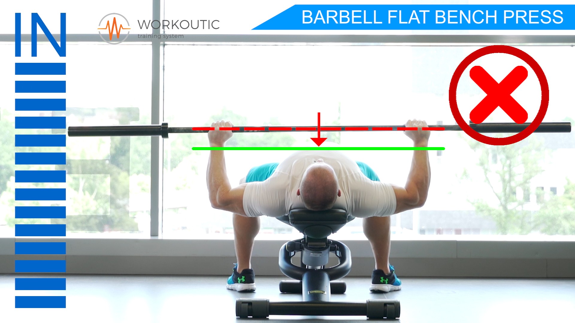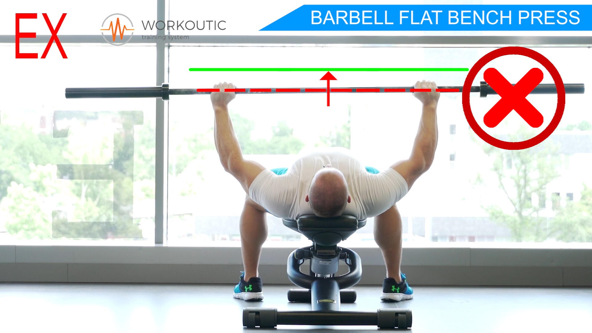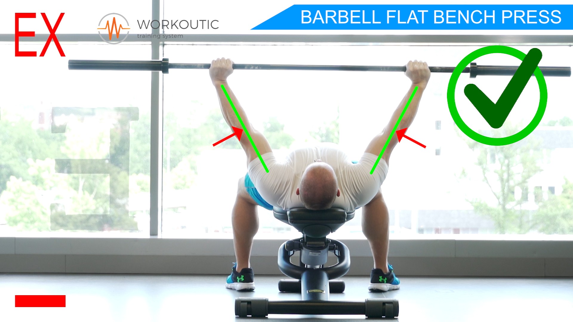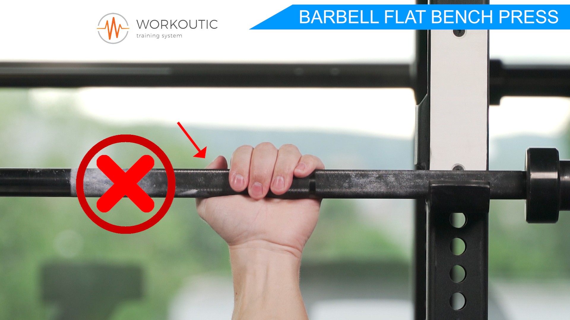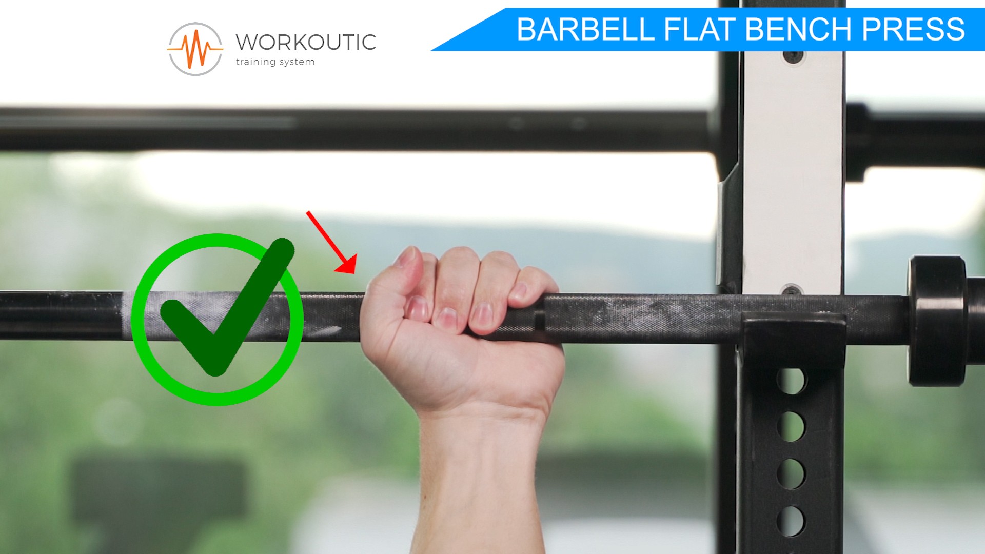 Pri Tlaku na rovnej lavičke je velmi dôležitý úchop, doporučujeme zbaviť sa bezpalcového úchopu a chytať osku správnym spôsobom s úchopom palca. Je to veľmi dôležité z hladiska bezpečnosti. Nakoľko sa môže stať, že sa činka pri úchope bez palca nekontrolovatelne vyšmykne z rúk. Viac k tejto téme sa dočítate v článku Bench press - úchop s palcom, alebo bez?.